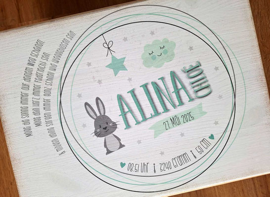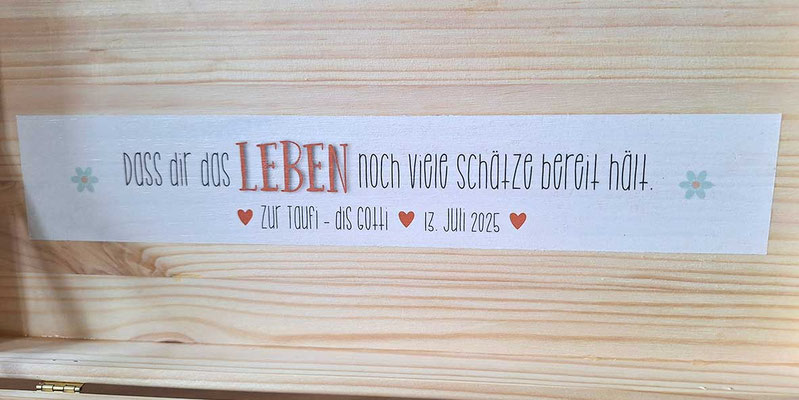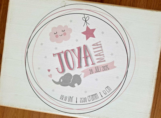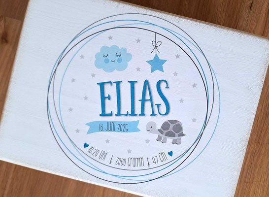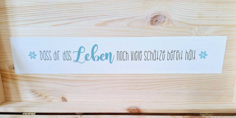 Erinnerungskiste für alle wertvollen Erinnerungen wie erster Body, Nuschi, Chäppli, Nuggikette, Zeichnungen, Fotos etc.